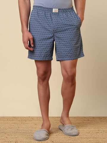 Sleepz Men Blue Print Regular Fit Cotton Boxer