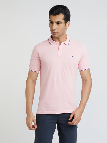 Raymond Pink Solid Modern Fit Half Sleeve Cotton T-Shirt