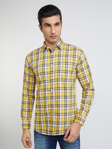 Men Yellow Slim Fit Checks Cotton Full Sleeve Shirts