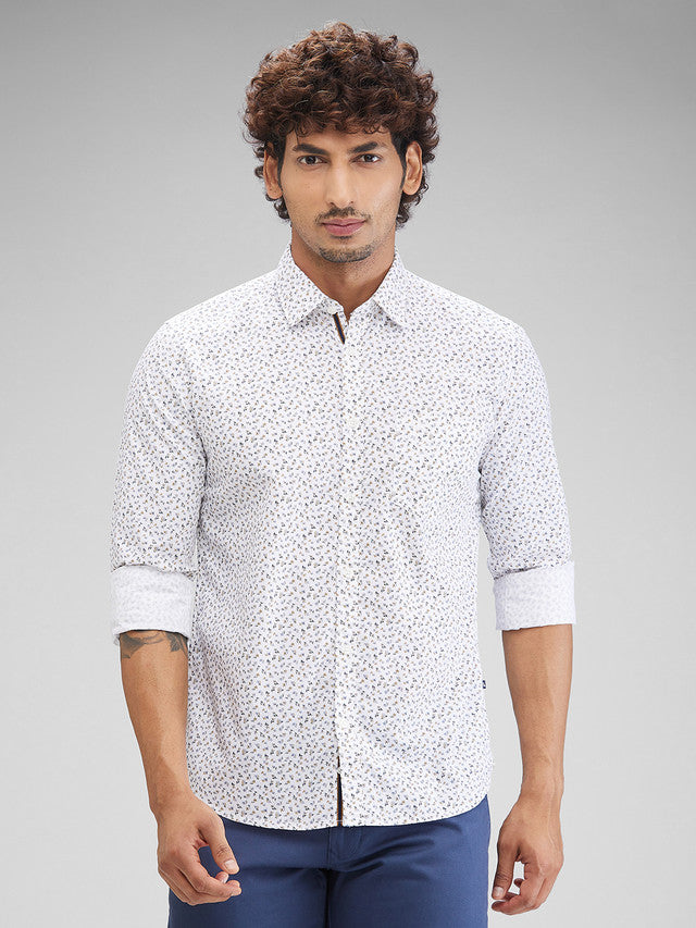 Parx White Printed Slim Fit Cotton Casual Shirt