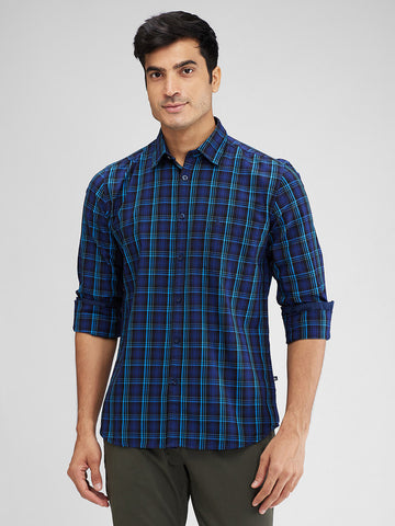 Parx Blue Checks Slim Fit Cotton Casual Shirt