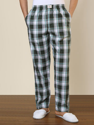 Sleepz Men Green Checks Regular Fit Cotton Pyjama