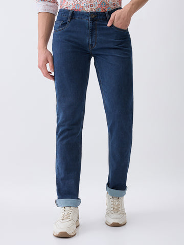 Parx Men Blue Knitted Low Rise Tapered Fit Cotton Blend Jeans