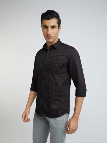 Parx Men Black Slim Fit Printed Cotton Full Sleeve Cut Away Shirt