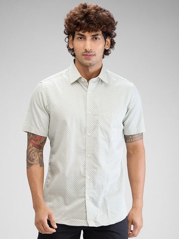 Park Avenue Green Structure Slim Fit Full Sleeve Cotton Shirt