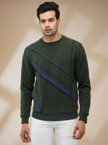 Colorplus Men Green Printed Regular Fit Cotton Blend Sweatshirt