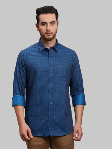 Raymond Men Blue Print Slim Fit Cotton Shirt