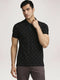 Men Black Regular Fit Print Cotton Round Neck Collar Polo T-Shirt