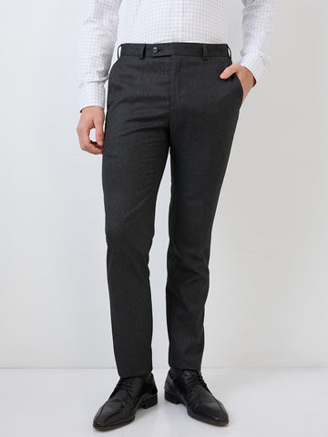 Park Avenue Men Black Structure Smart Fit Polyester Blend Trouser
