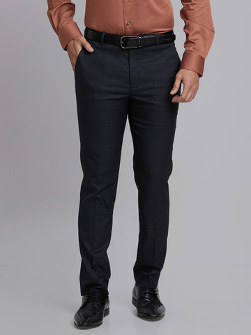 Park Avenue Men Black Checkered Super Slim Fit Trouser