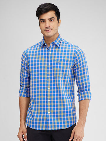 Colorplus Blue Checks Contemporary Fit Cotton Casual Shirt