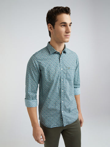 Men Blue Slim Fit Print Cotton Full Sleeve Shirts