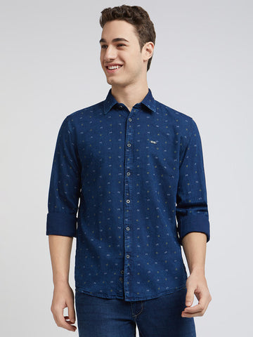 Men Blue Slim Fit Print Cotton Full Sleeve Shirts
