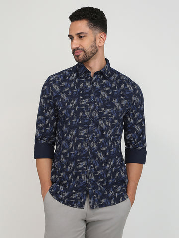 Men Blue Slim Fit Print Cotton Shirts