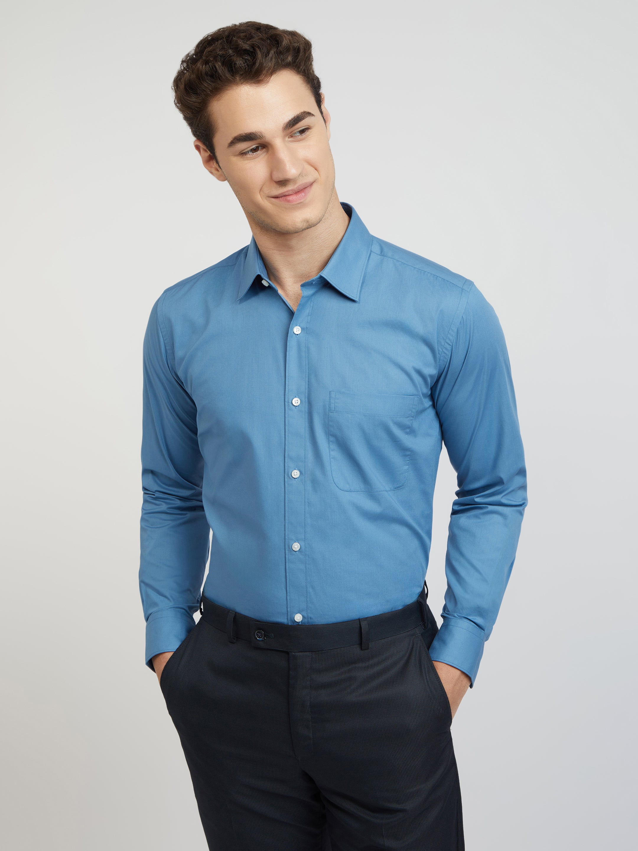 Raymond Blue Solid Regular Fit Cotton Formal Shirt