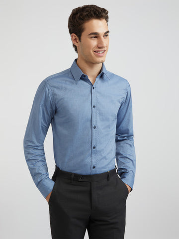 Men Blue Slim Fit Structure Cotton Shirts