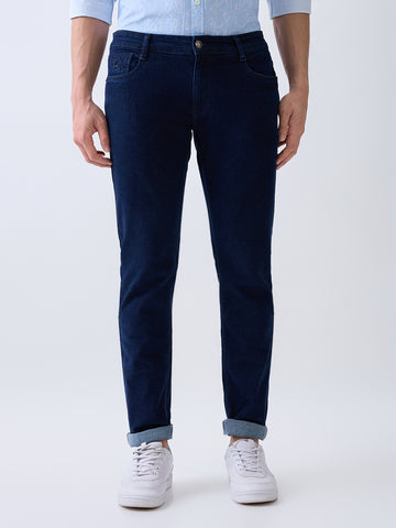 Parx Men Blue Knitted Low Rise Tapered Fit Cotton Blend Jeans