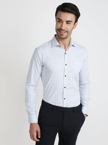 Park Avenue Men Blue Checks Slim Fit Cotton Formal Shirt