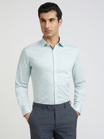 Park Avenue Green Printed Slim Fit Cotton Formal Shirt