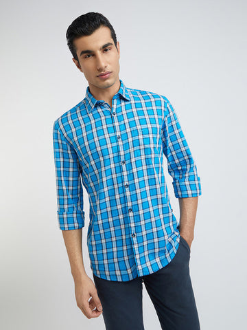 Men Blue Slim Fit Checks Cotton Full Sleeve Shirts
