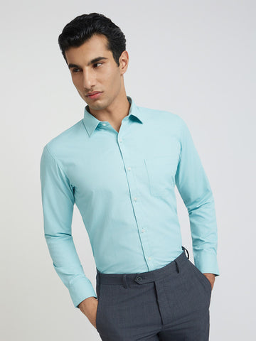Colorplus Blue Solid Piece Dyed Slim Fit Full Sleeve Cotton Shirt