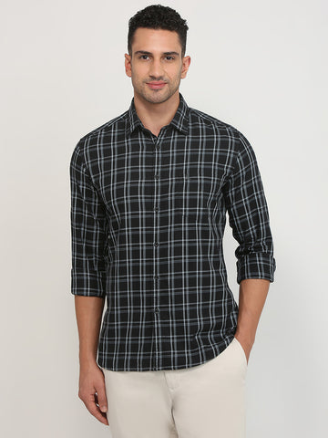 Parx Men Black Checks Slim Fit Cotton Casual Shirt