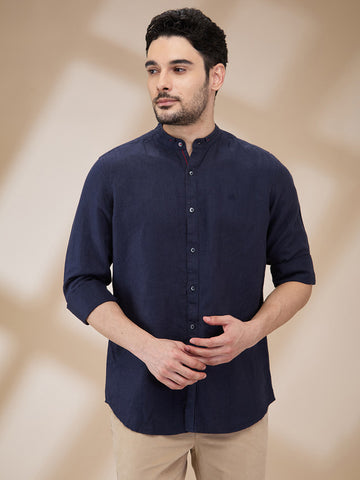 Raymond Men Blue Solid Regular Fit Linen Casual Shirt