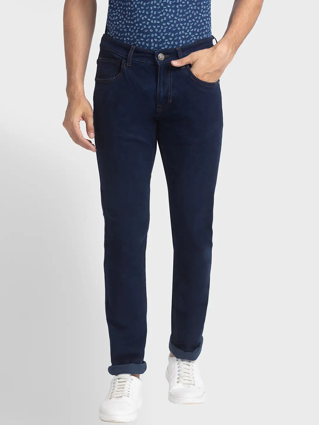 Men Navy Tapered Fit Twill Cotton Blend Jeans
