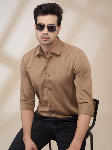 Colorplus Men Brown Plain Regular Fit Cotton Shirt
