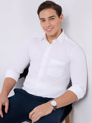 Colorplus Men White Woven Design Regular Fit Full Sleeve Spread Collar Shirt