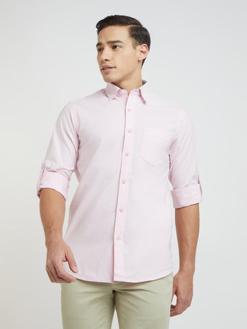 Colorplus Men Red Plain Slim Fit Cotton Blend Shirt