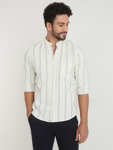 Colorplus Men Blue Stripe Regular Fit Cotton Full Sleeve Casual Shirt