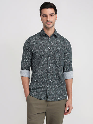 Colorplus Men Black Printed Regular Fit Cotton Full Sleeve Casual Shirt