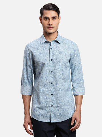 Colorplus Men Blue Printed Tailored Fit Cotton Casual Shirt