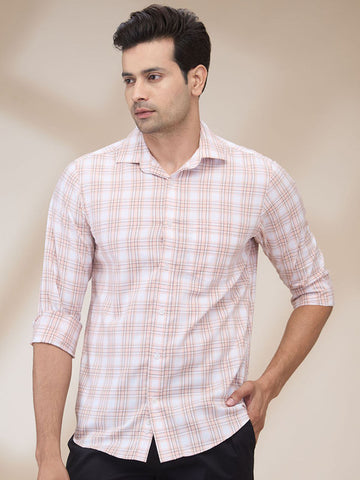 Colorplus Men Orange Checks Regular Fit Cotton Casual Shirts