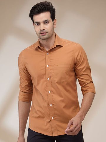 Colorplus Men Brown Plain Regular Fit Cotton Casual Shirts