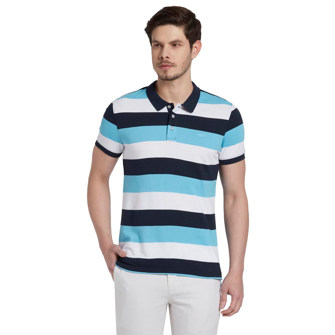 Men Blue Slim Fit Stripe Cotton Half Sleeve T-Shirt