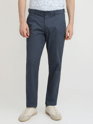 Colorplus Men Blue Twill Slim Fit Cotton Trouser