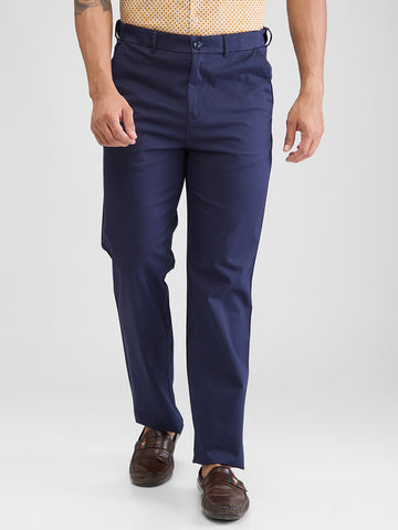 ColorPlus Men Blue Solid Piece Dyed Contemporary Fit Cotton Blend Trouser