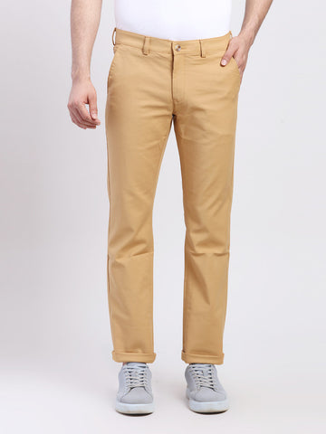 Men Fawn Contemporary Fit Solid Cotton Blend Trouser