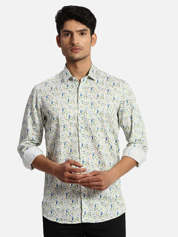 Colorplus Men Green Printed Regular Fit Cotton Printed Casual Shirt