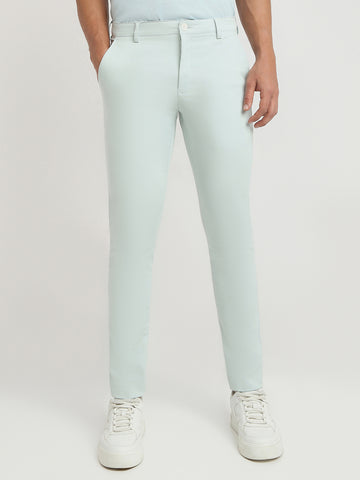 Colorplus Men Green Twill Super Slim Fit Cotton Blend Trouser