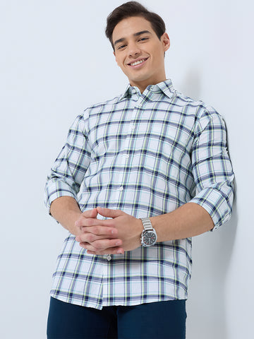 Colorplus Men White Checks Regular Fit Cotton Casual Shirt
