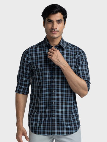 Colorplus Men Blue Checkered Tailored Fit Polyester Blend Casual Shirt