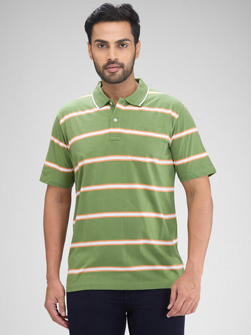 Colorplus Green Stripe Comfort Fit Half Sleeve Cotton T-Shirt