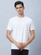 Men White Slim Fit Solid Cotton Blend T-Shirt