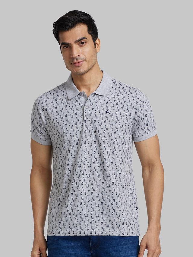 Parx Men Grey Printed Regular Fit Half Sleeve Polo Neck T-Shirt
