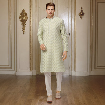 Ethnix Men Green Jacquard Polyester Kurta Chudidar