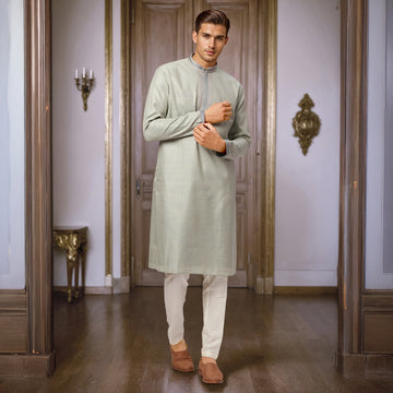 Ethnix by Raymond Men Green Embroidery Regular fit Polyster Blend Kurta