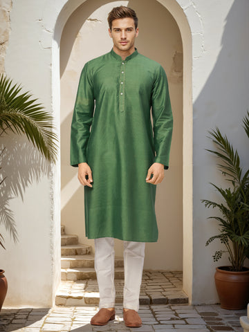Ethnix by Raymond Men Green Solid Regular fit Polyster Blend Kurta